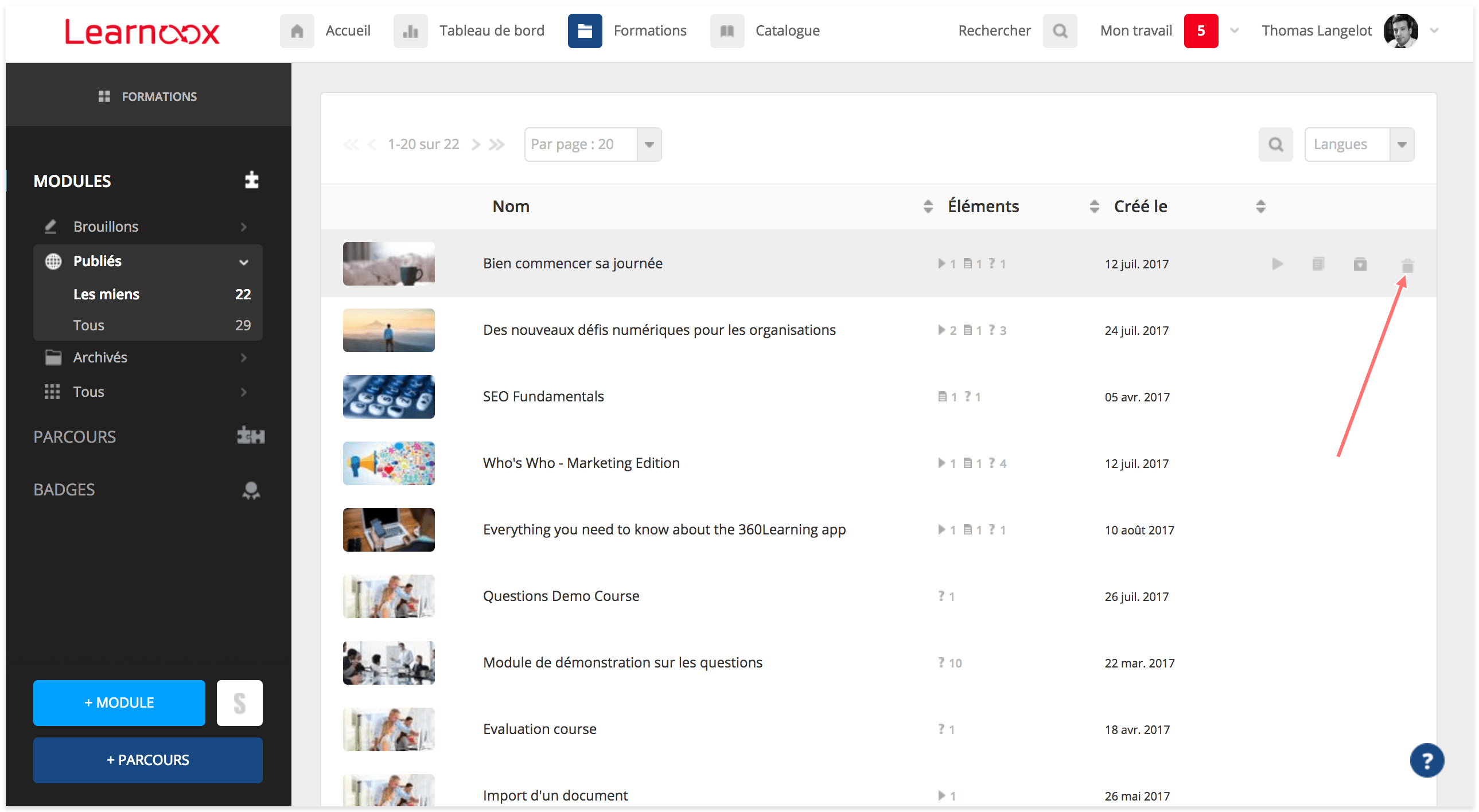 Gérer mes modules retrouver les brouillons, modifier, archiver et from support.360learning.com